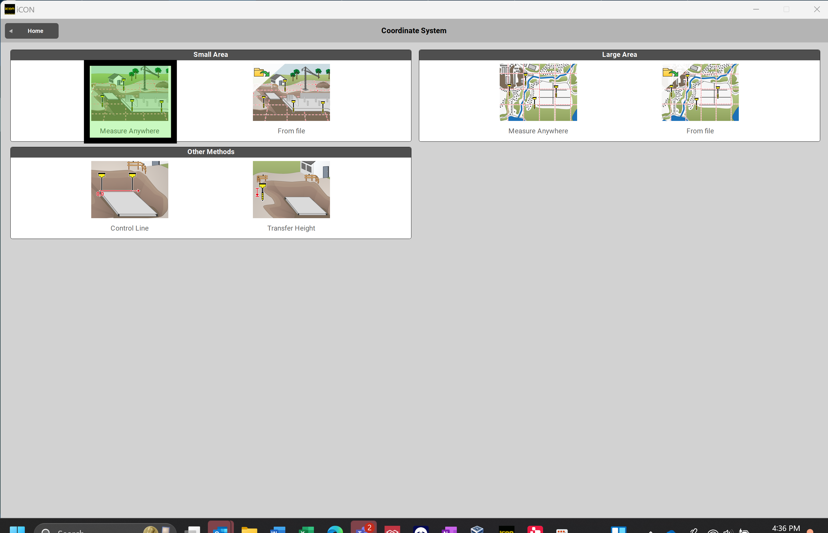 For small projects, select Setup Anywhere. This will take you to a screen resembling the measure mode interface. The top-right message will prompt you to select the first control point.
