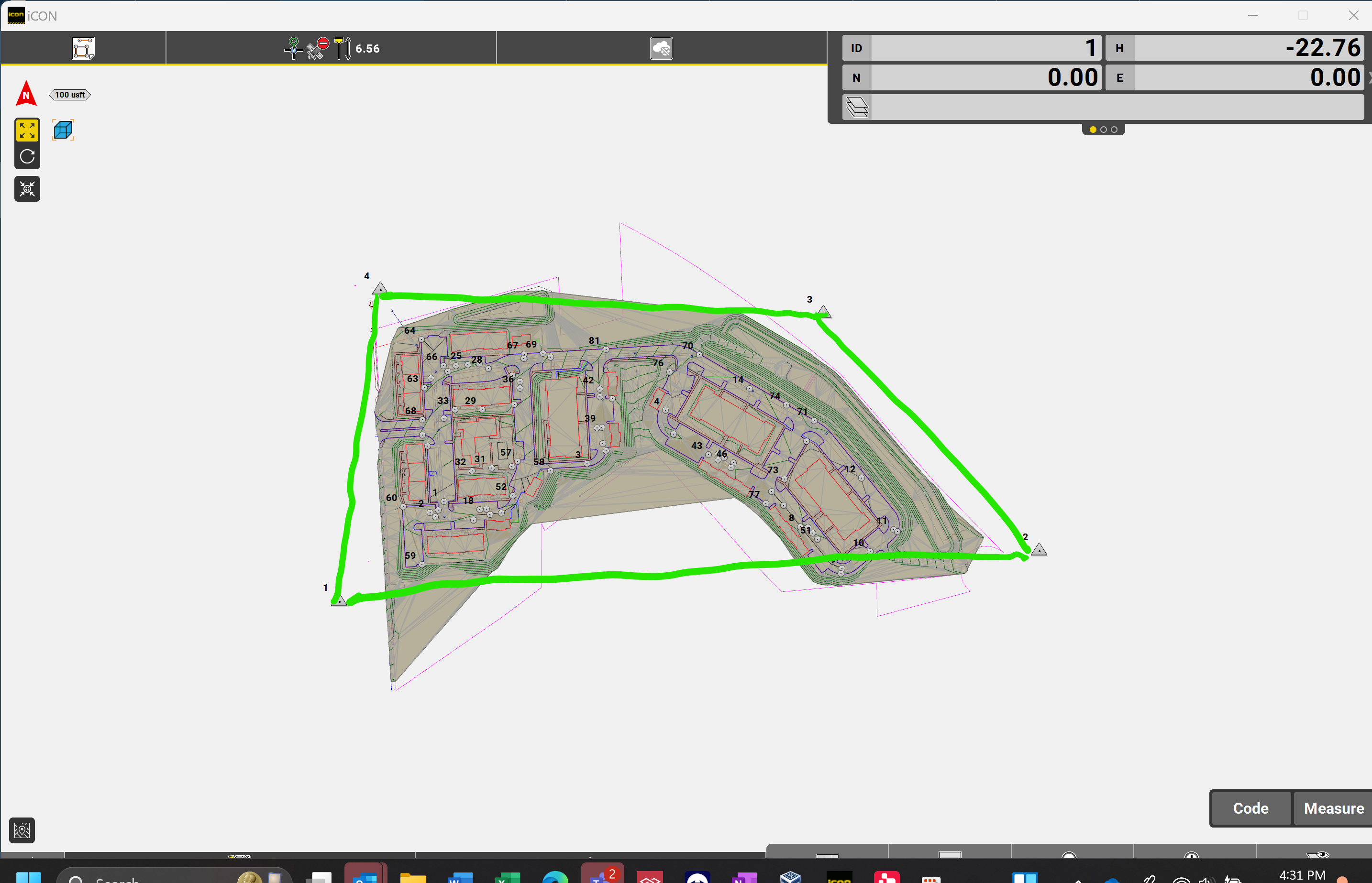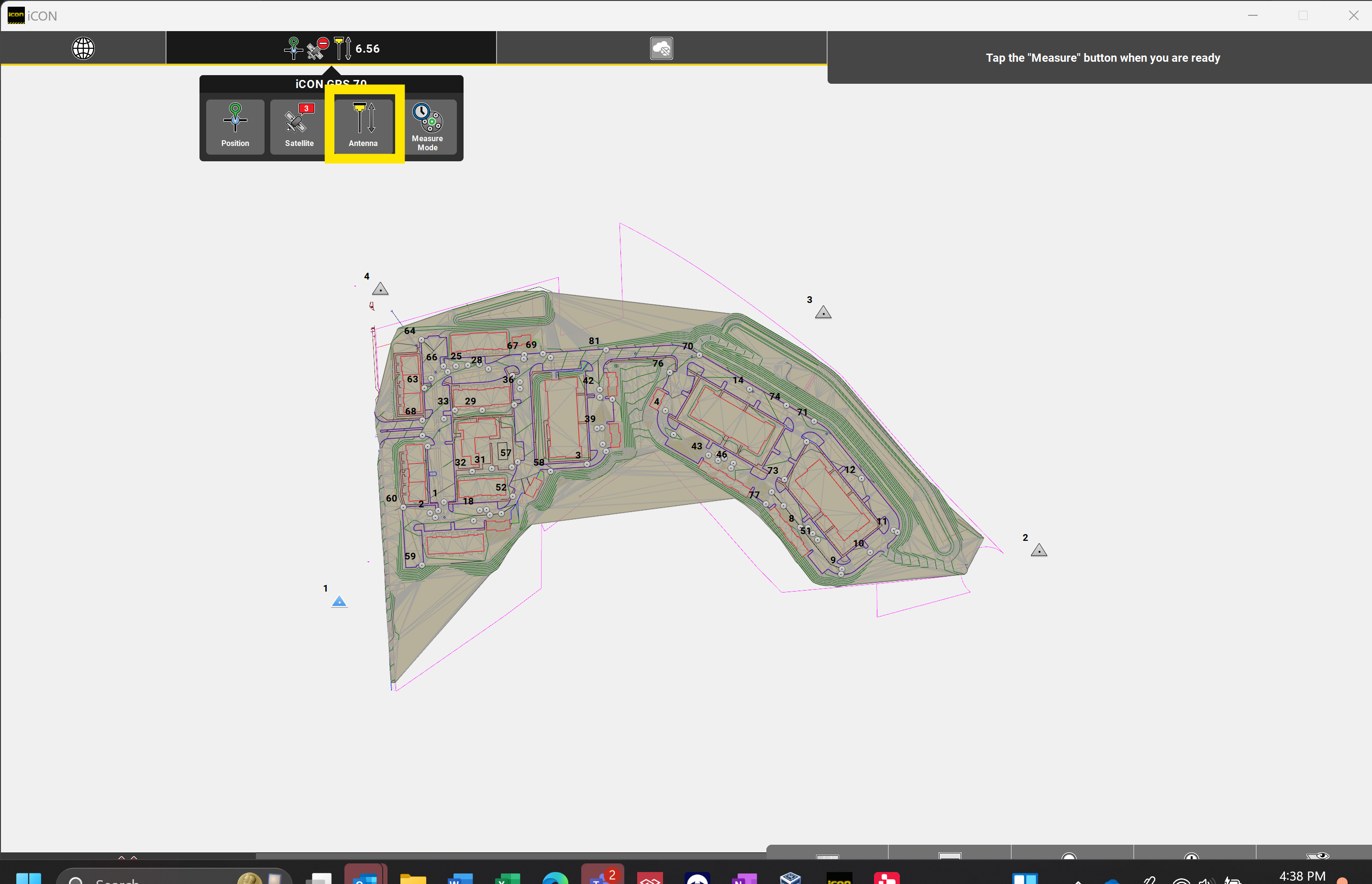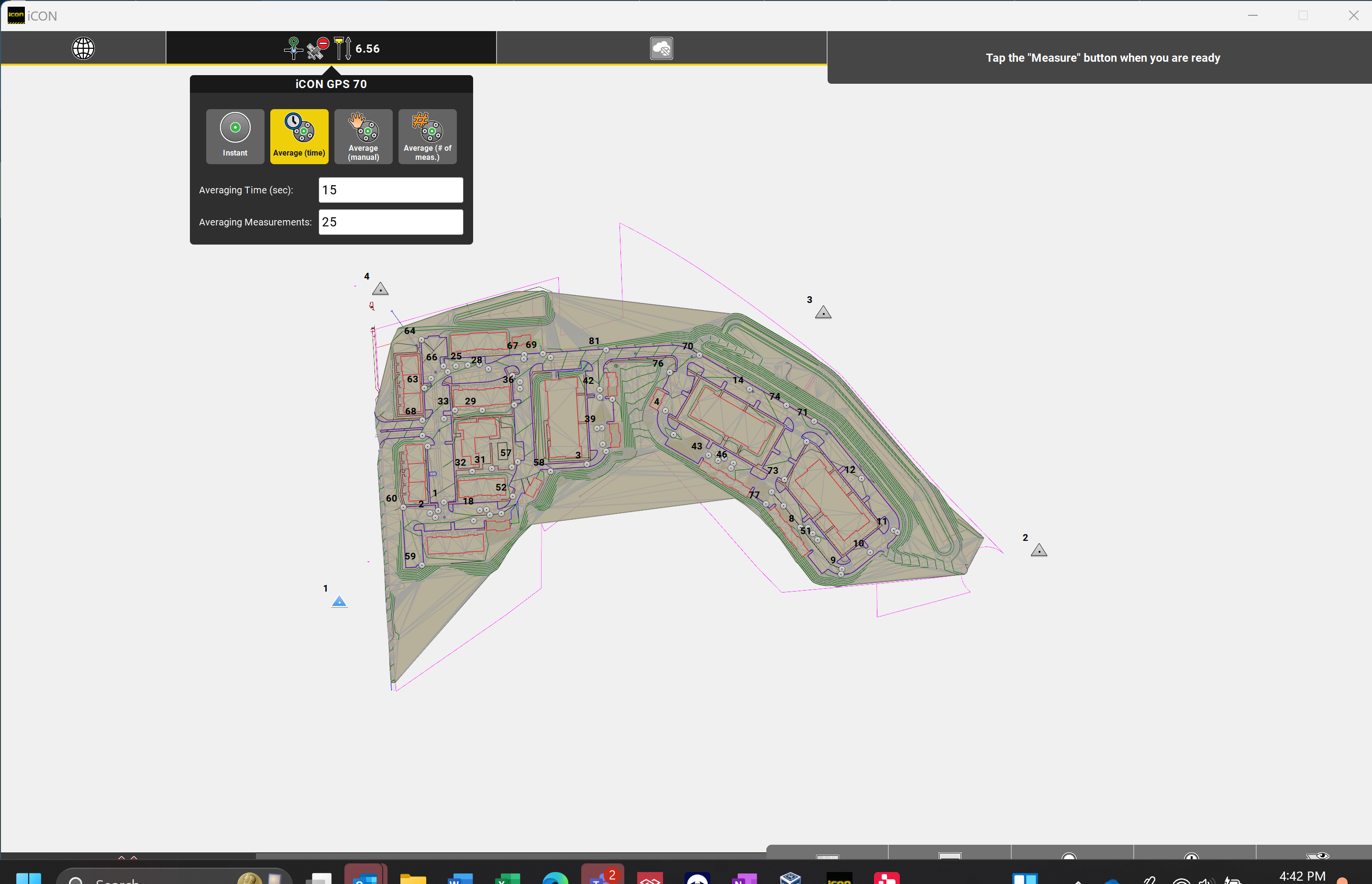 Return to the home screen and enter measure mode to check the map. Confirm the control points are positioned correctly and align with the job site’s boundaries.
