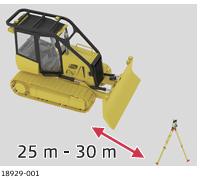 - Set the total station at a distance of 25-30 m away from the machine in order to measure all the necessary points, especially the rear GNSS position. Make sure to measure all the machine points in one setup. Do not move the total station during calibration.