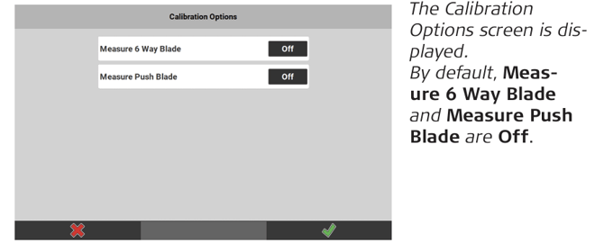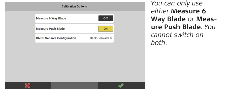 - In the Calibration Options screen, switch Measure Push Blade on and select the GNSS Sensors Configuration.