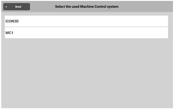 When all points have been measured successfully, the Select the used Machine Control system screen is displayed.