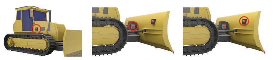 ➜ In case the IMU points are hidden and not visible, for example when the Cabin IMU is installed inside the cabin, measure them with off sets in X, Y, Z, with ΔX being the offset along the longitudinal axis and ΔY being the offset along the cross axis of the dozer. ΔZ is