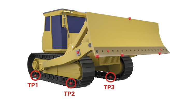 toolbox. - Measure 3 points on the dozer tracks (TP1...TP3), to define the horizontal plane.
