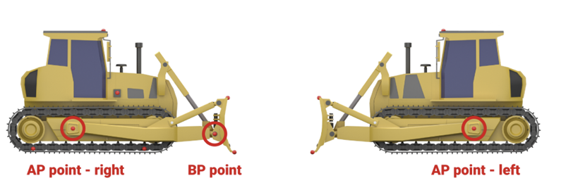 - Continue with measuring the arm and blade pivot points. The arm pivot point needs to be measured on both sides of the dozer. Make sure to apply the correct prism type and prism height.