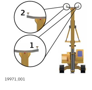➜ Boom and tower must be aligned with the machine body. Points Ref1 and Ref2 must be aligned with the boom.