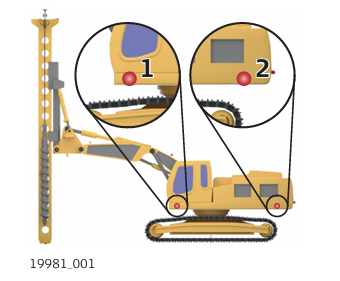 ➜ It is important to have the boom and tower aligned with the machine body. The points Ref1 and Ref2 must be also aligned with the boom.