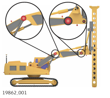 Body mounted machines: The prisms/GNSS are located on the main body of the machine.