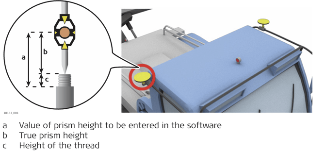 GNSS positions must be measured correctly. Before measuring the GNSS positions, make sure that you have entered the correct prism height. Take into account the height of the thread.