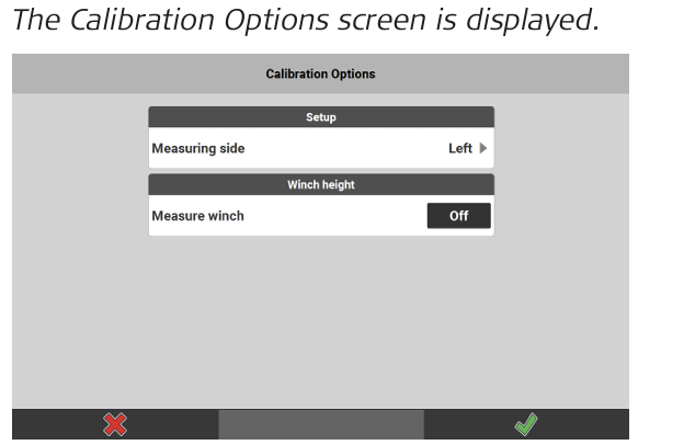 • If you want to calibrate the snow groomer including the winch, set Measure winch to On.