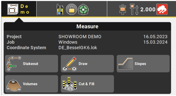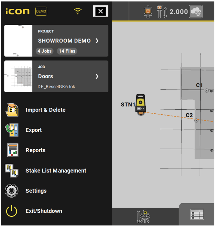 • Allows for viewing Total Station or GNSS Base Station information, depending on the connected instrument.