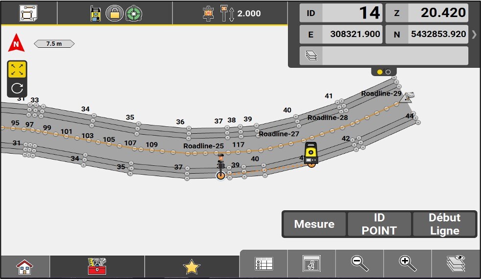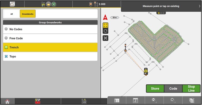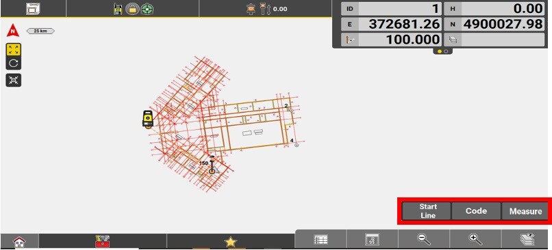Recording is done by pressing the Store button in total station mode, or the MEASURE button in GNSS mode.