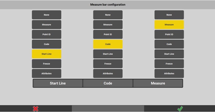 * When the buttons on the measurement bar are pressed and held, the configuration menu appears.