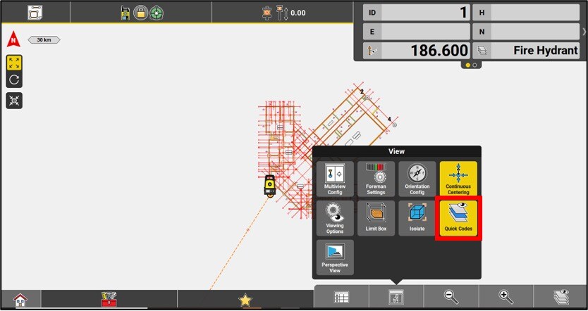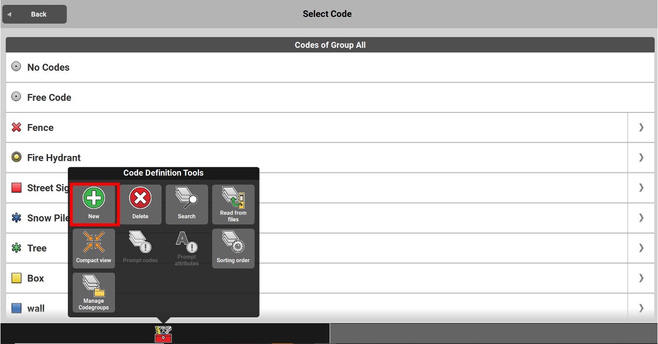 By pressing the Code button on the measurement bar, you can access the list of codes.