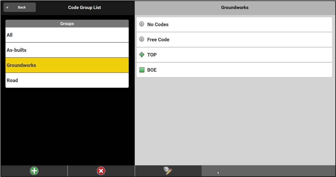 The screen will then be split in two and the user will have quick access to codes and code groups.