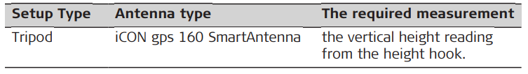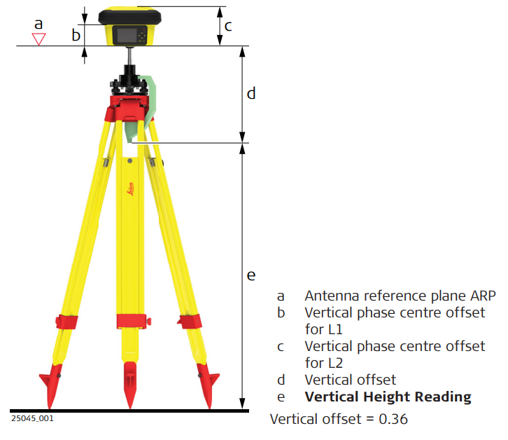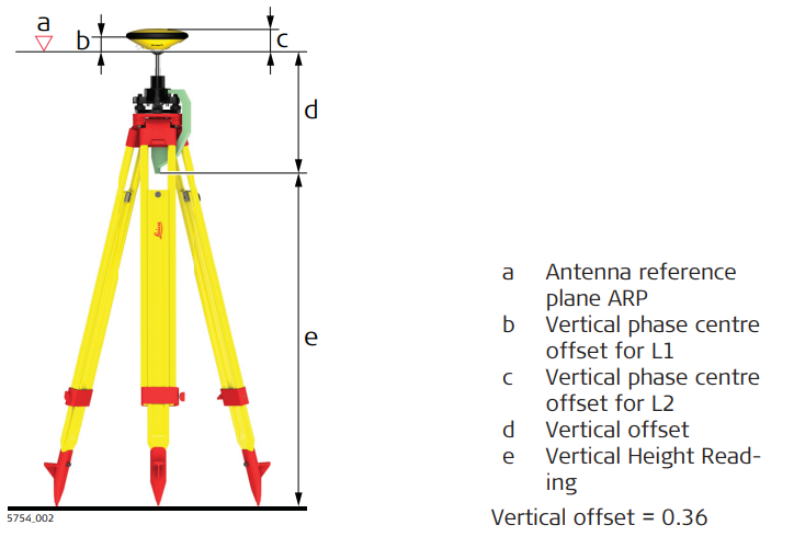 • The vertical offset of 0.36m is automatically stored in the antenna setup record for a tripod setup and will automatically be taken into account. It does not need to be entered.