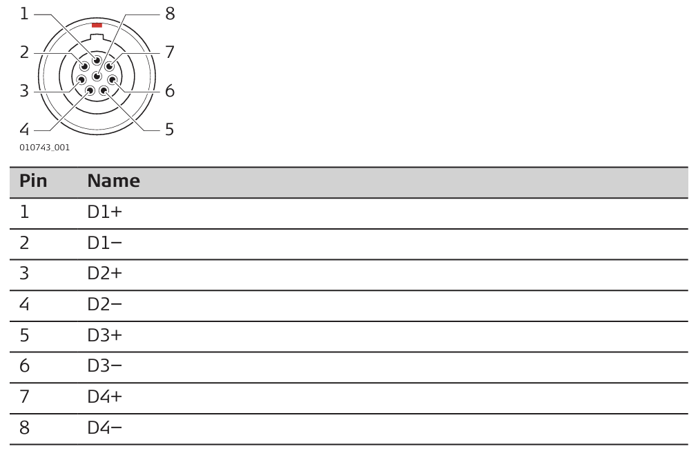 Pin Assignment of Lemo Ports 5.4.1 Ethernet port: Lemo1, 8 pin female Power supply port: Lemo1, 5 pin female