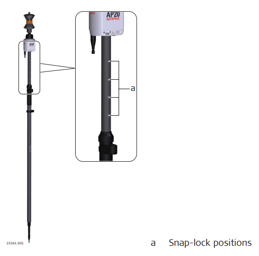 As soon as a snap-lock position is reached, the attached AP20 receives the detected height from the AP Reflector Pole and transmits it to the field software of the connected total station or field controller.