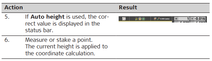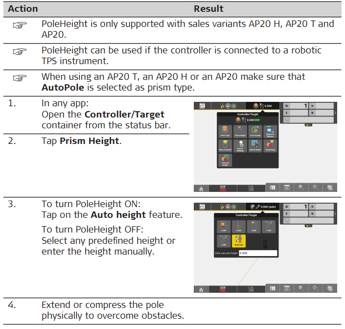 The transmitted height corresponds to the current length between prism centre and pole tip, which is equivalent to the printed scale on the pole and the height input field within the field software.