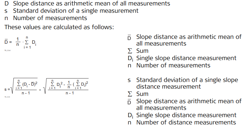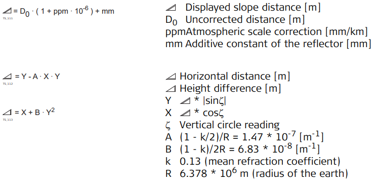 Formulas: The instrument calculates the slope distance, horizontal distance, height difference in