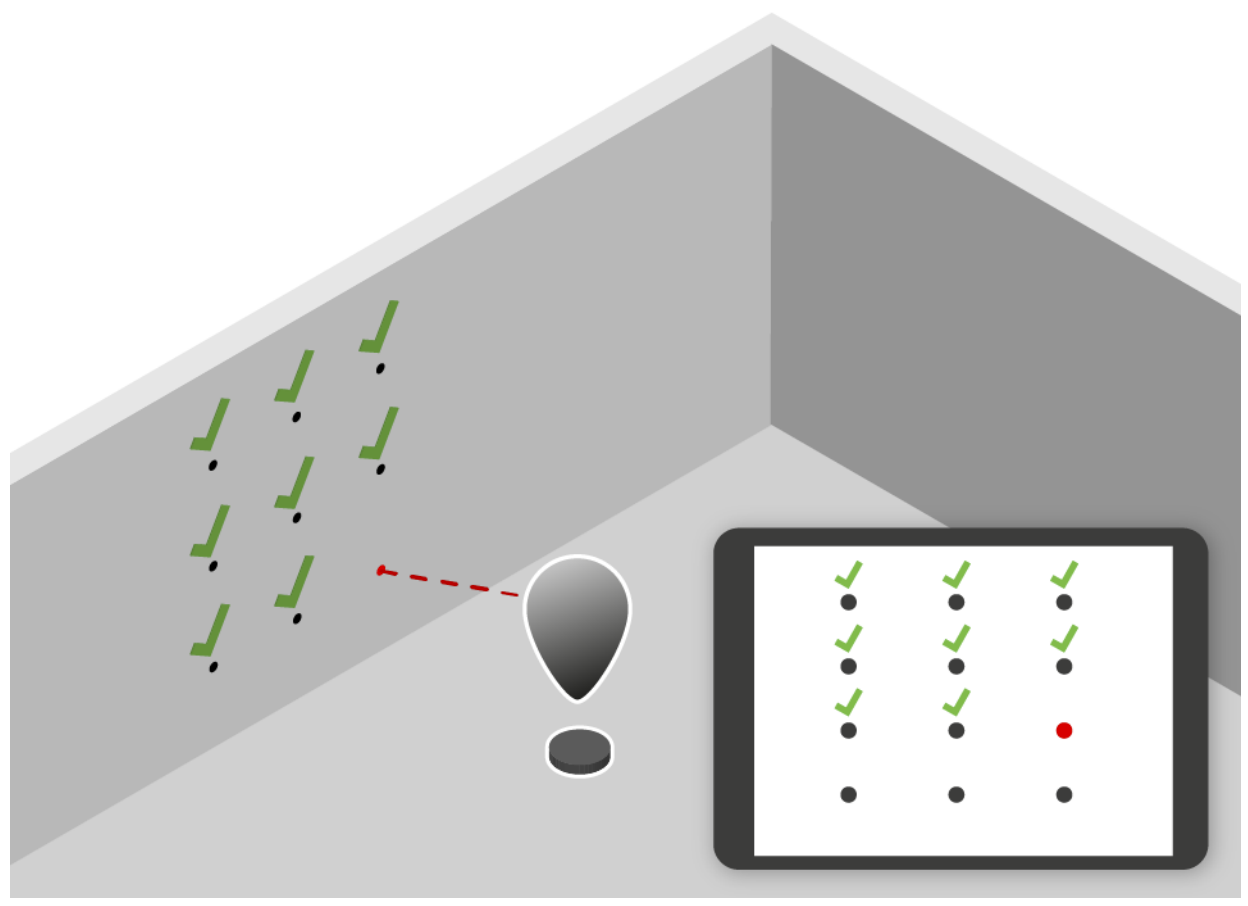 Mark points with a regular horizontal or vertical spacing on a wall, floor, or ceiling.