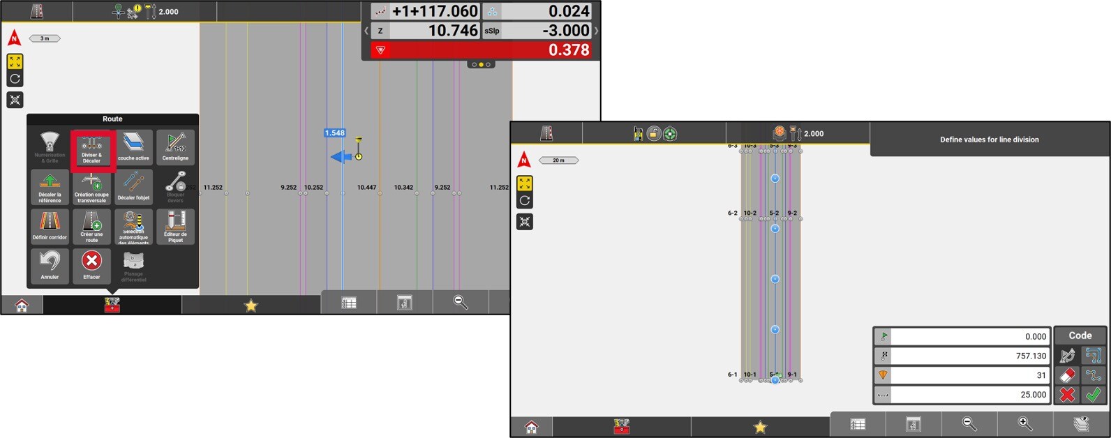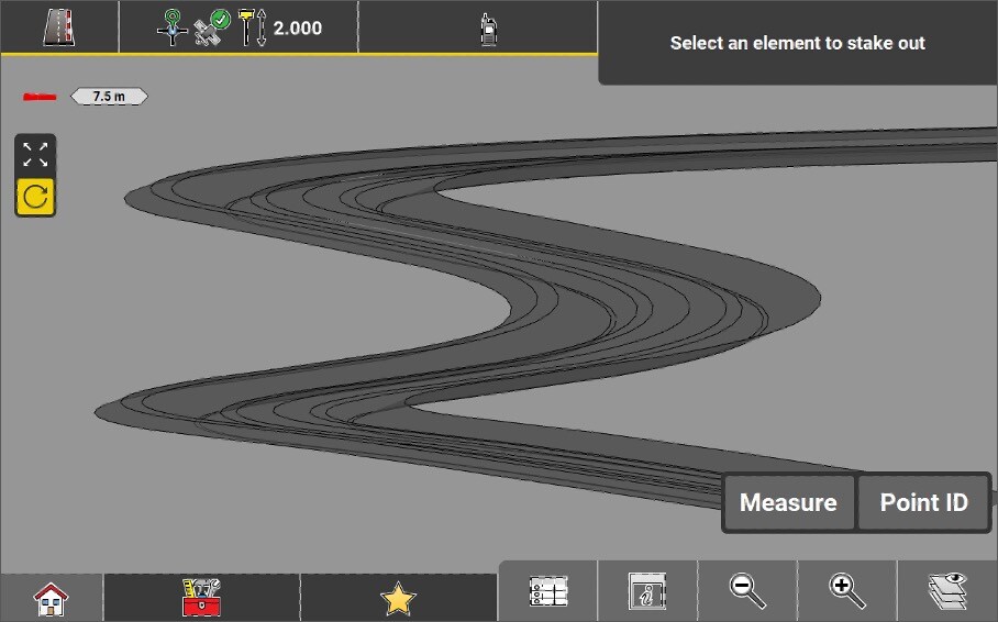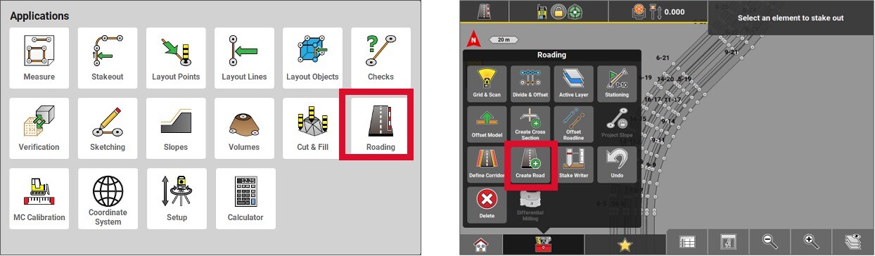 The road is now created, it is now possible to stake out elements by using the Roading application.