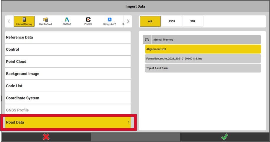 To import an XML road alignment or corridor, select the Road Data option. For importing an existing road project (LMD or XML), ensure that the Road Data type is also selected.