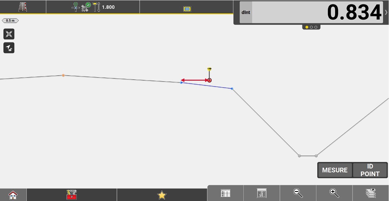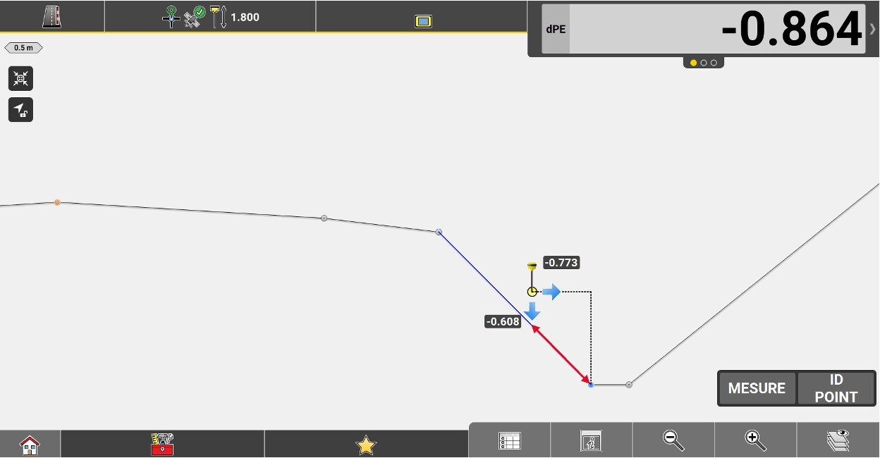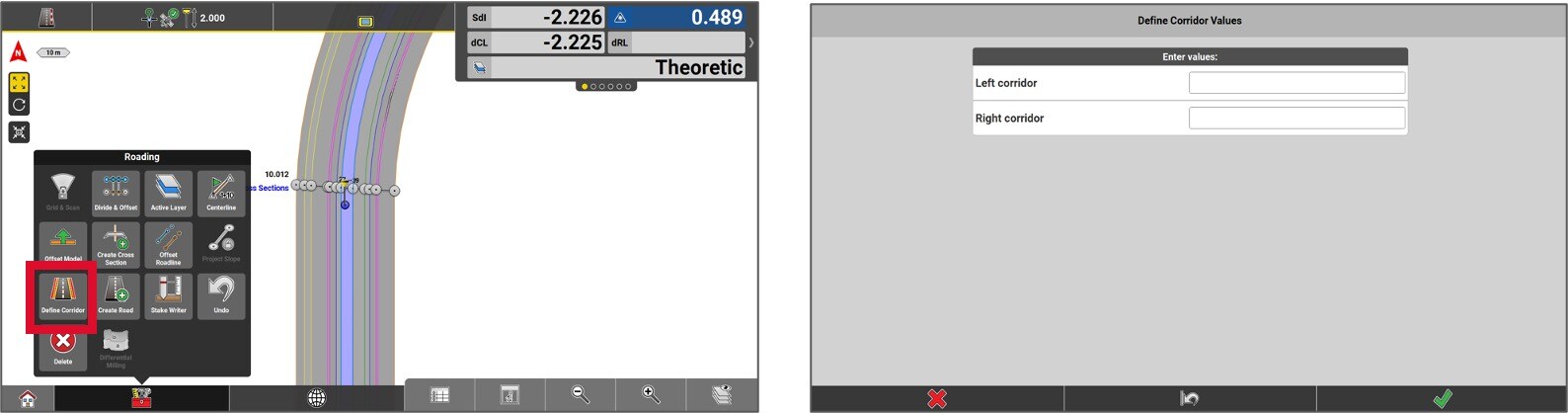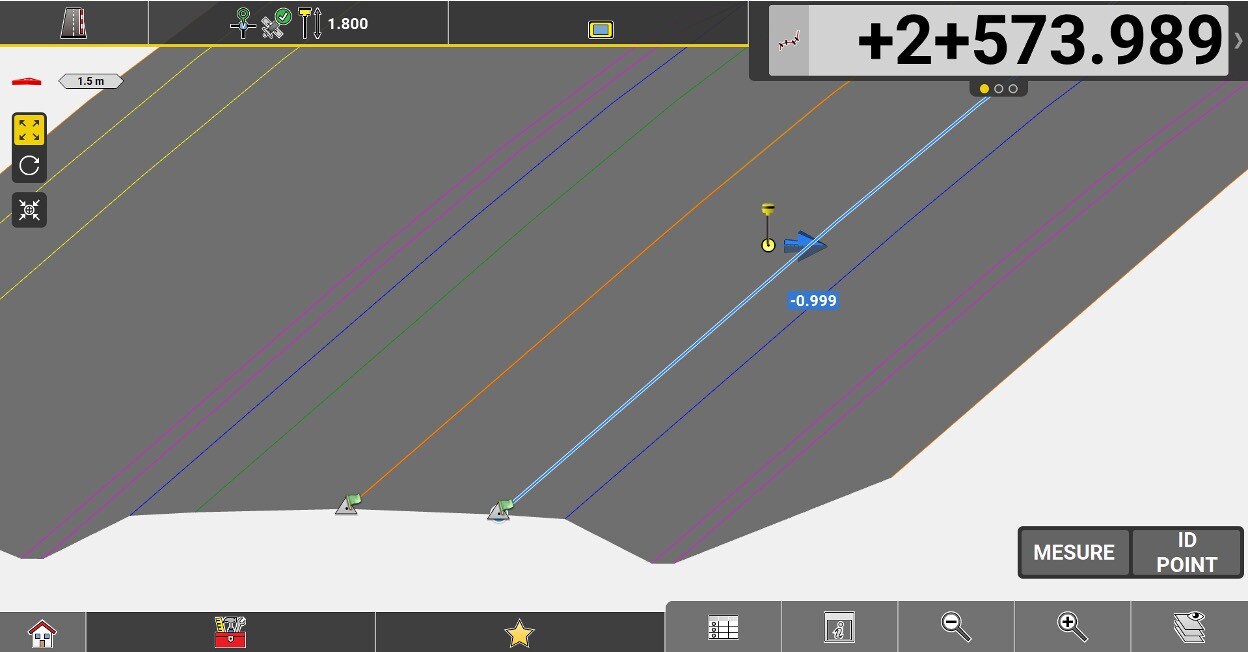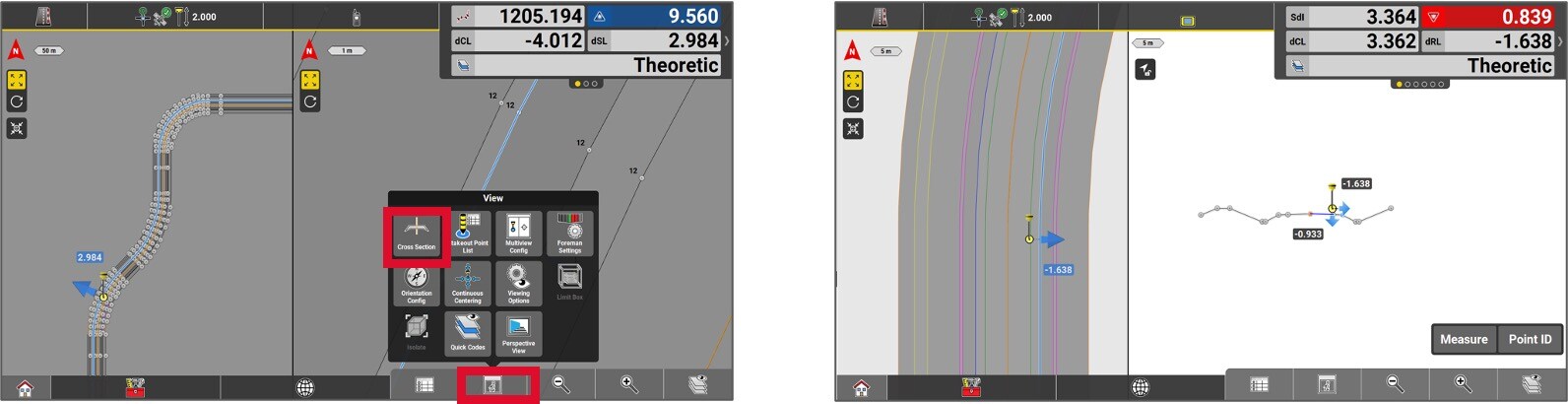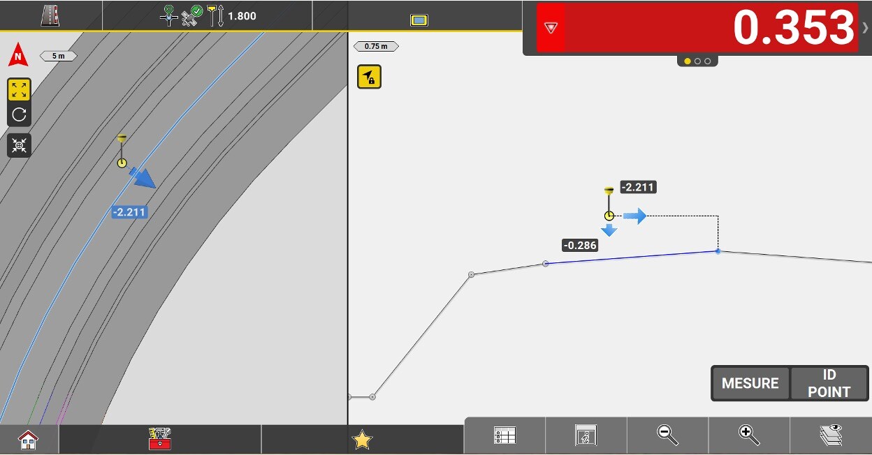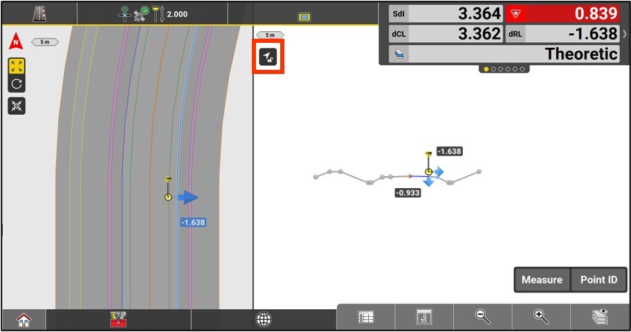 The cross-sectional view in the Roading application changes direction based on the user’s direction of travel. You can block a specific direction by pressing the button at the top left corner of the sectional view.