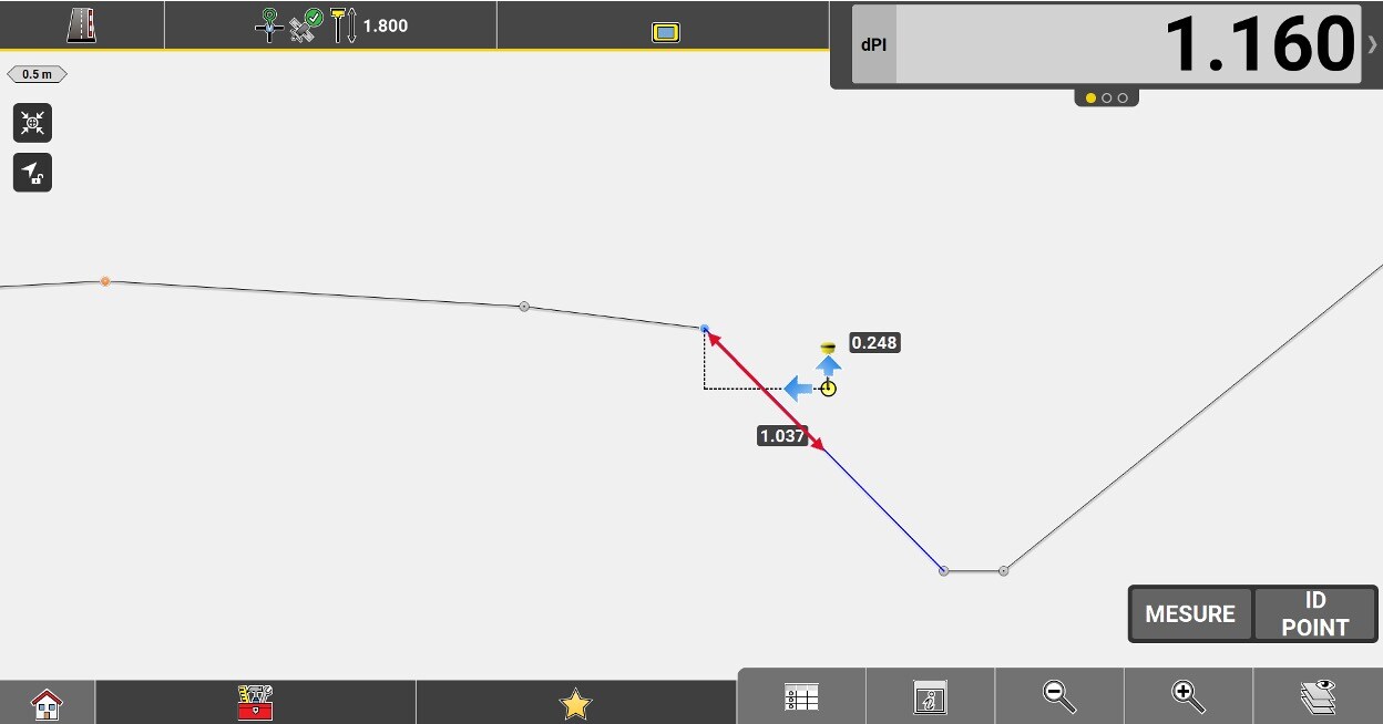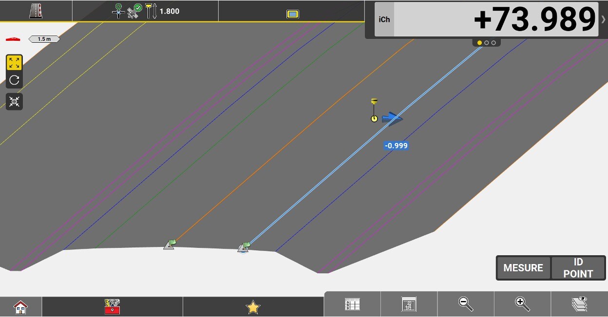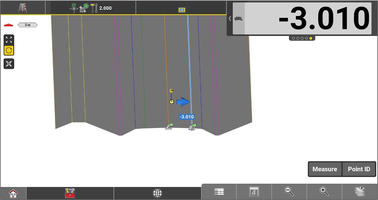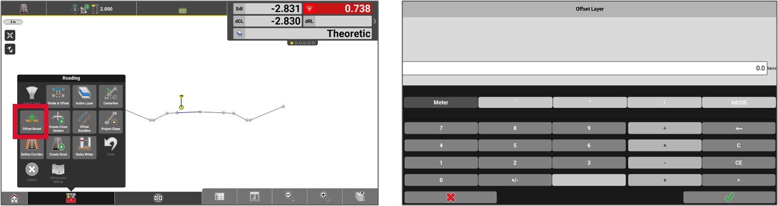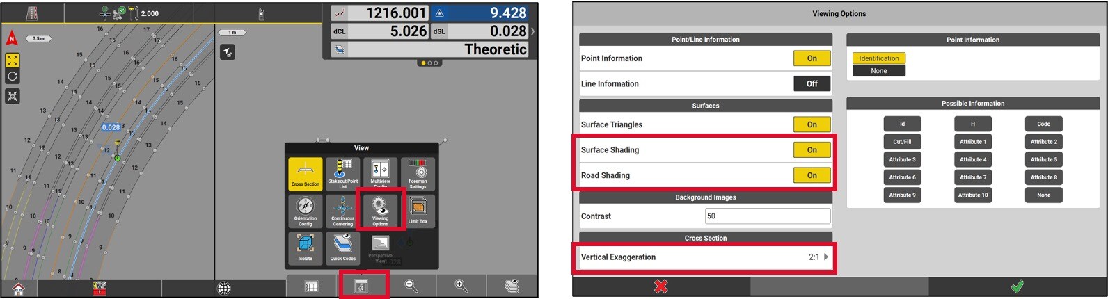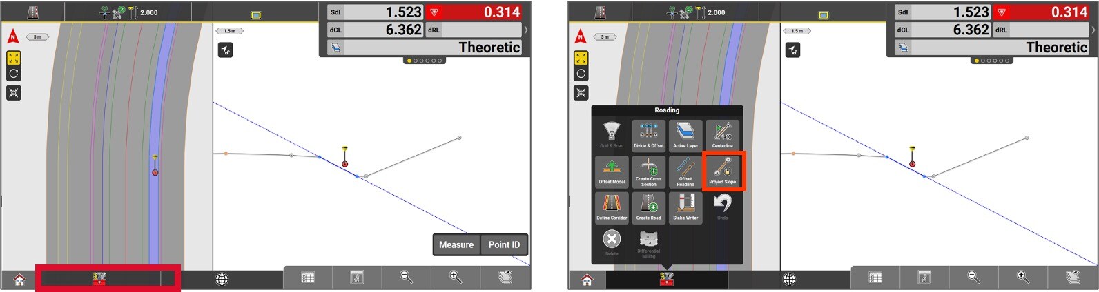 The cross-sectional view in the Roading application changes direction based on the user’s direction of travel. You can block a specific direction by pressing the button at the top left corner of the sectional view.