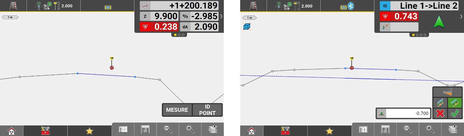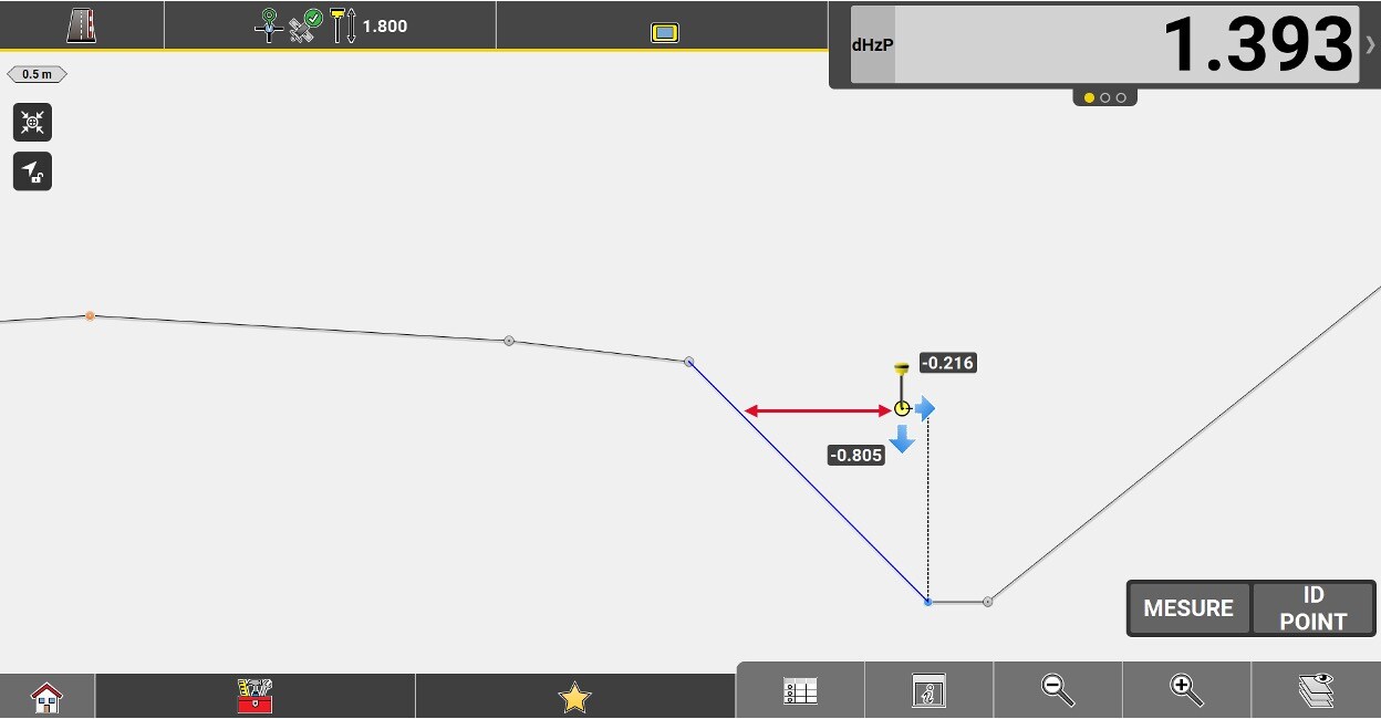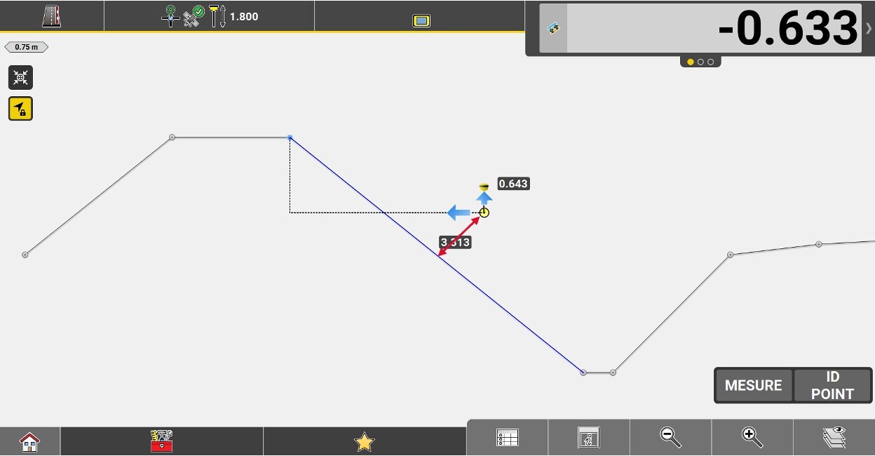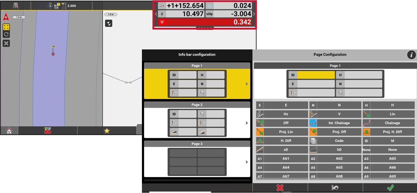 Important note: In stakeout, "sSlp" becomes the perpendicular slope connecting the measured position to the reference line. The value is negative if the position is above the line.