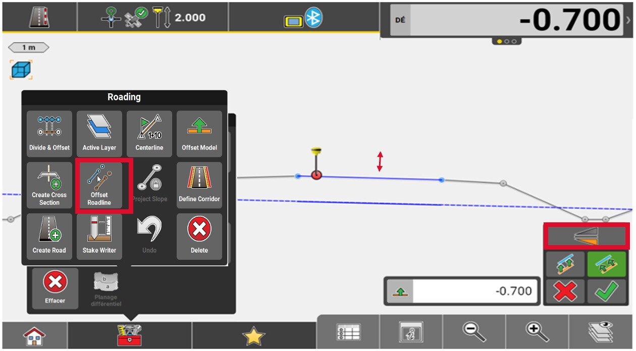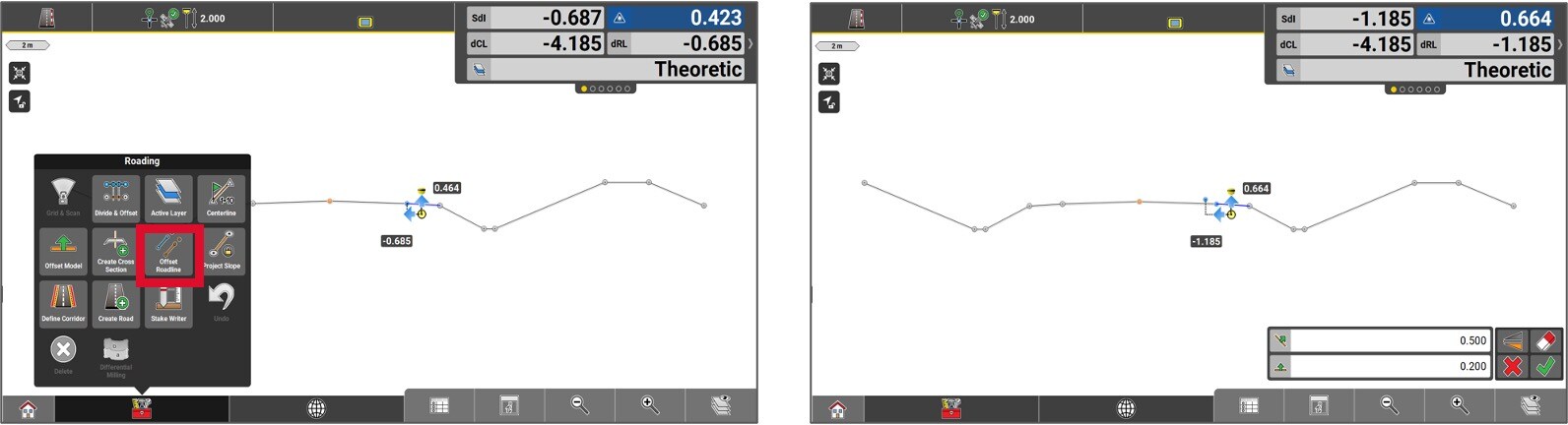 To offset an element, we start by selecting it. Then, access the Toolbox and select Offset Roadline.