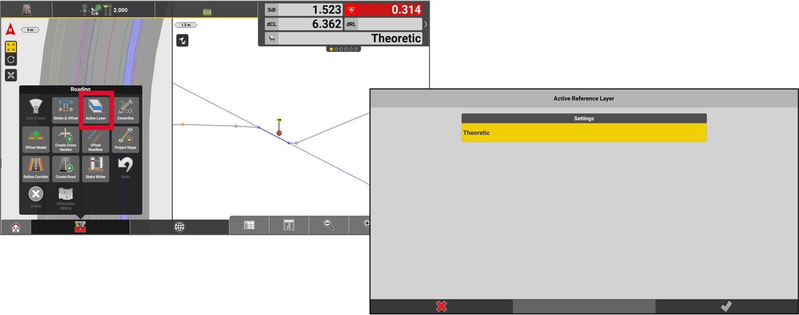 To change the active reference layer of the current road model, go to the Toolbox and press Active layer.
