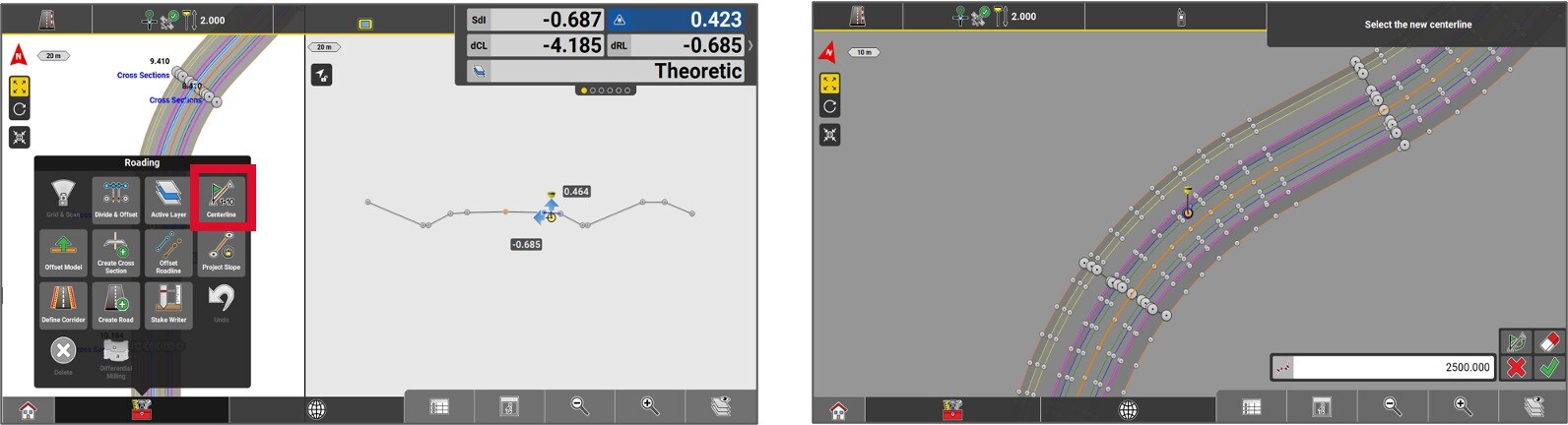 - Follow the steps indicated on the top left corner of the screen. Select the primary alignment (centerline).