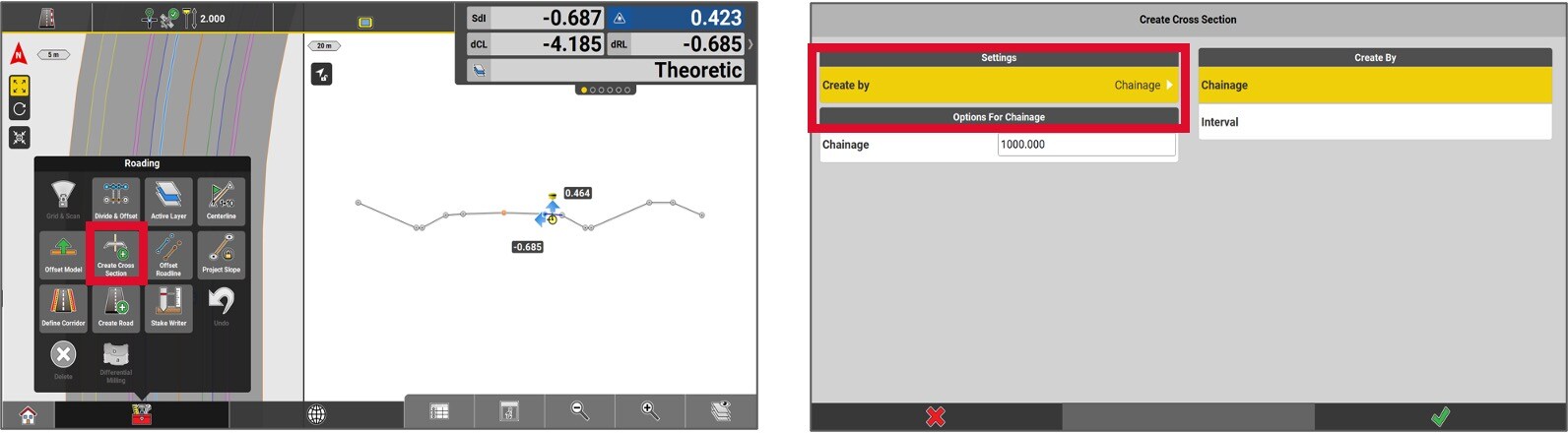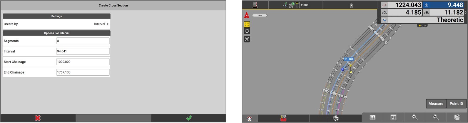 To create stakeout points of profile sections, access the Toolbox and select Create a cross-section.