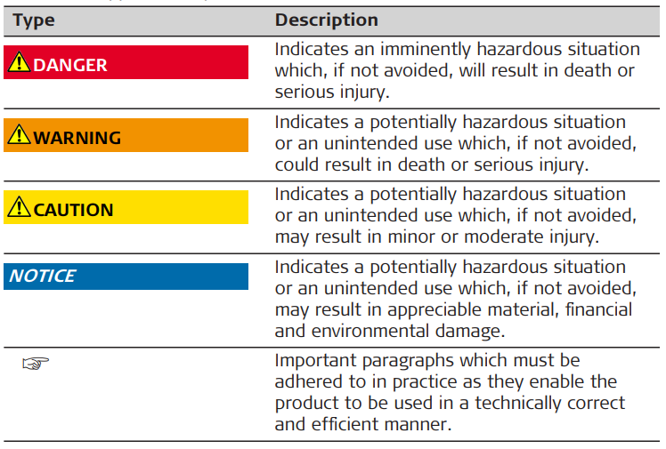 identifying levels of hazards and risks related to personal injury and property damage. For your safety, it is important to read and fully understand the following table with the different signal words and their definitions! Supplementary safety information symbols may be placed within a warning message as well as supplementary text.