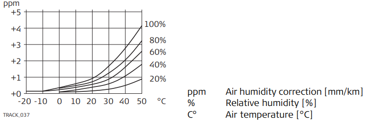 If the basic value of 60 % relative humidity as used by the EDM is retained, the maximum possible error in the calculated atmospheric correction is 2 ppm, 2 mm/km.