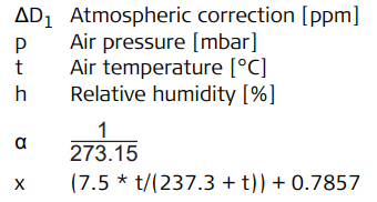 For highest precision distance measurements, the atmospheric correction should be determined with an accuracy of 1 ppm. The following parameters must be redetermined: