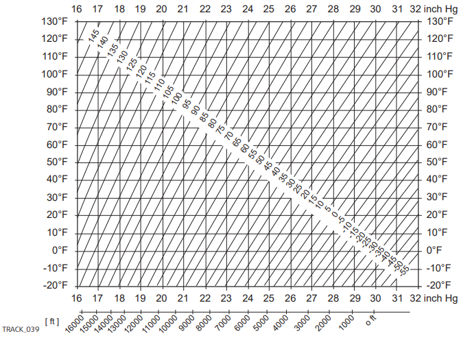 Atmospheric correction in ppm with temperature [F], air pressure [inch Hg] and height [ft] at 60 % relative humidity