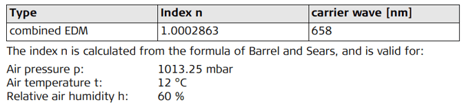 For highest precision distance measurements, the atmospheric correction should be determined with an accuracy of 1 ppm. The following parameters must be redetermined: