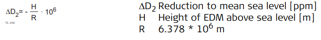 The slope distance displayed is correct if the scale correction in ppm, mm/km, which has been entered corresponds to the atmospheric conditions prevailing at the time of the measurement.