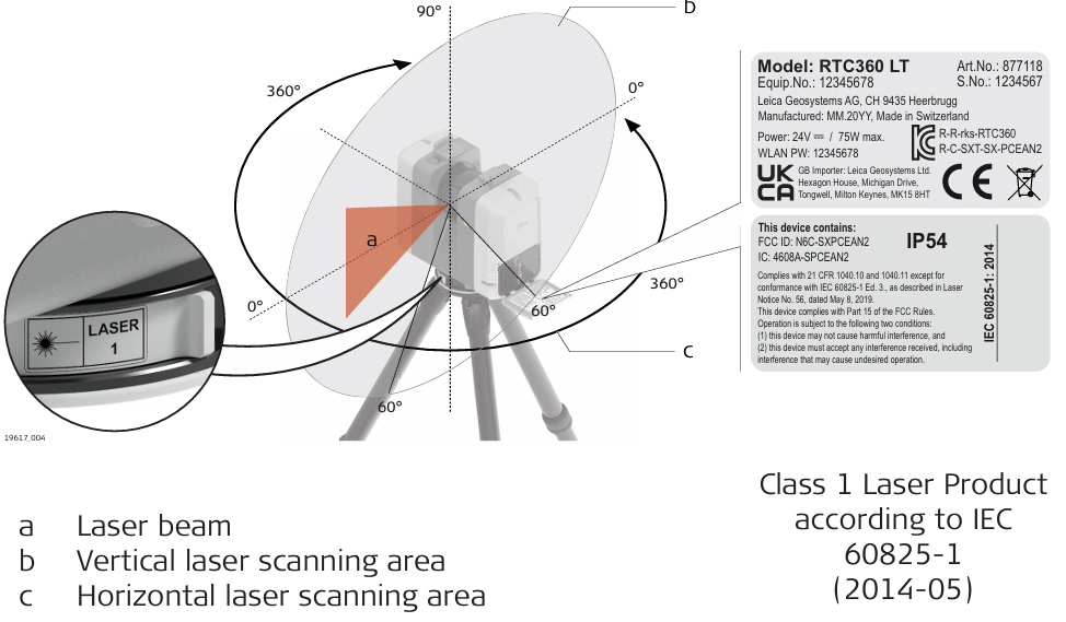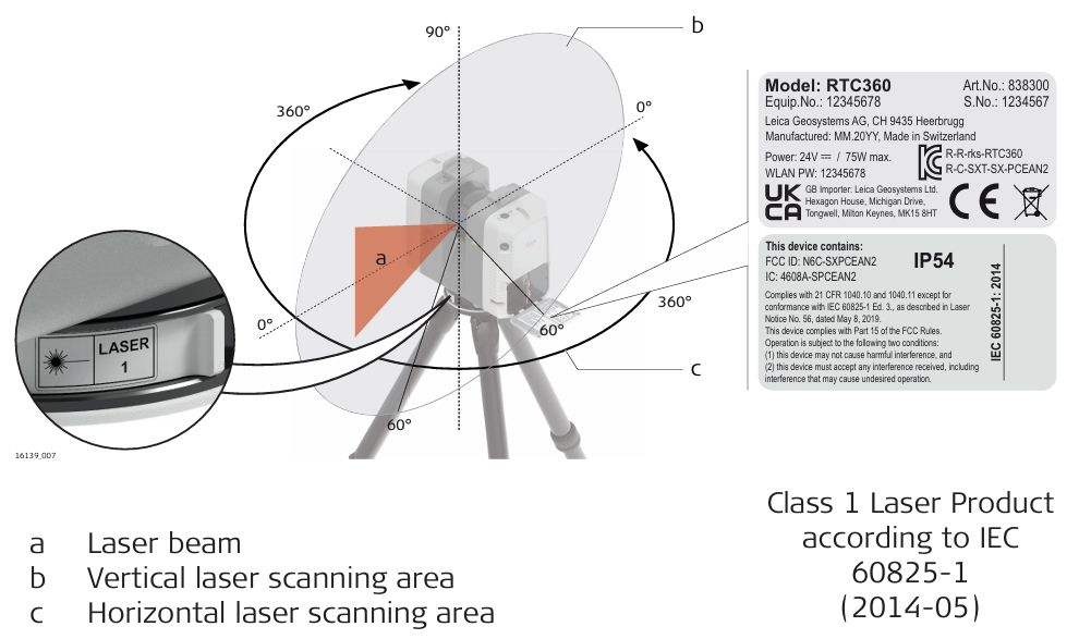 The laser incorporated in the product produces an invisible beam, which emerges from the rotating mirror. The laser product described in this section is classified as laser class 1 in accordance with:
