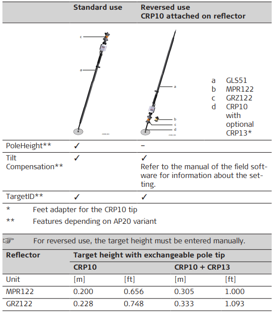 ➜ AP20 is only compatible with AP reflector poles CRP4, CRP5, GLS51 and GLS51F.