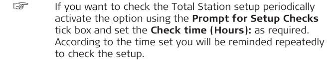 To use the prism settings as defined in the Status bar, deativate the tick box. - Select Height check for station > With Height: if you want to save the station with the height value entered as instrument height (see above).