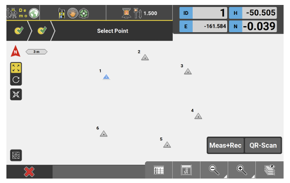 - Tap a point to select it as the first point to measure. Aim telescope at target point, then press Measure, then Store, or press Meas+Rec, if configured.