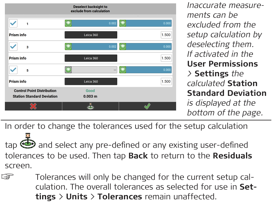 - When all measurements to be used for the setup calculation are within tolerance, tap