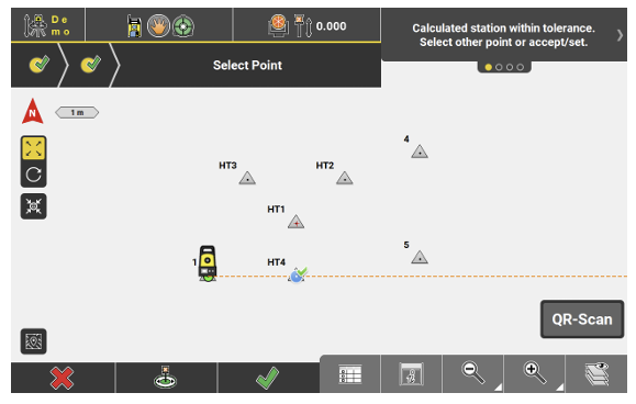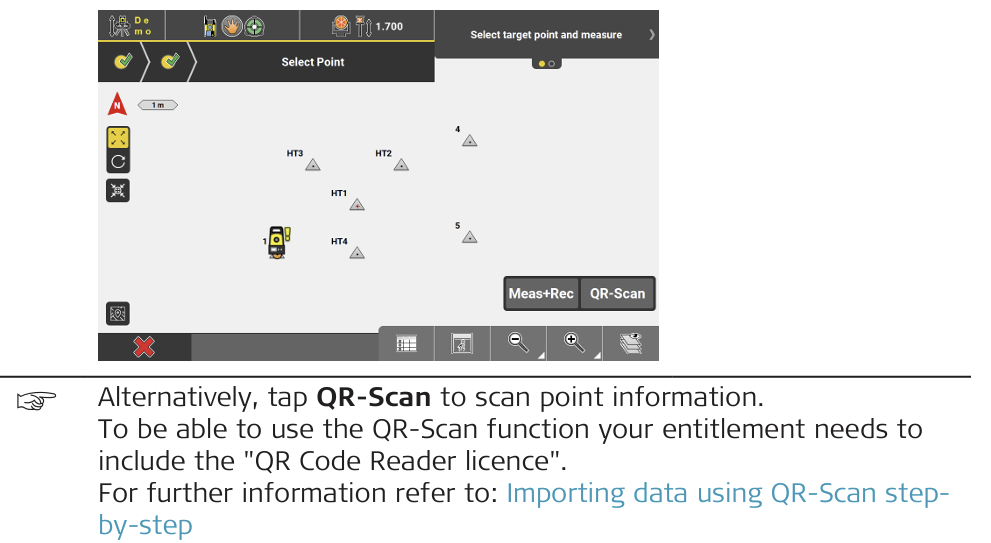 - Select the Station Point, and select a Target Point. Aim telescope to target point, then press Measure, then Store, or press Meas+Rec, if configured.