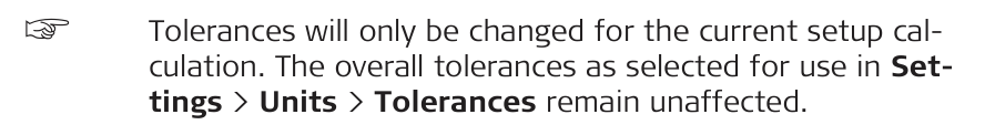 - In order to change the tolerances used for the setup calculation, tap