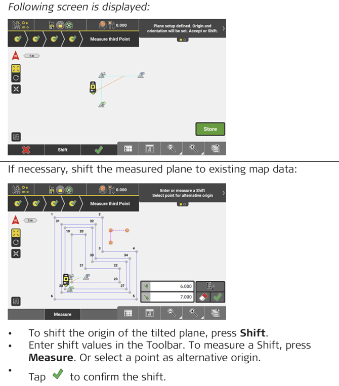 to proceed to the next Wizard step. - Measure the third control point to define the tilted plane. Tap