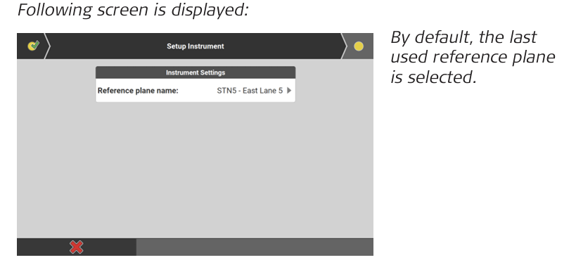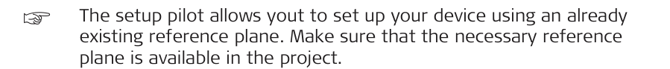 iCON site: Optionally, select Setup from the Favourites key. - Select Set reference plane. For an overview of available setup methods refer to General Description.