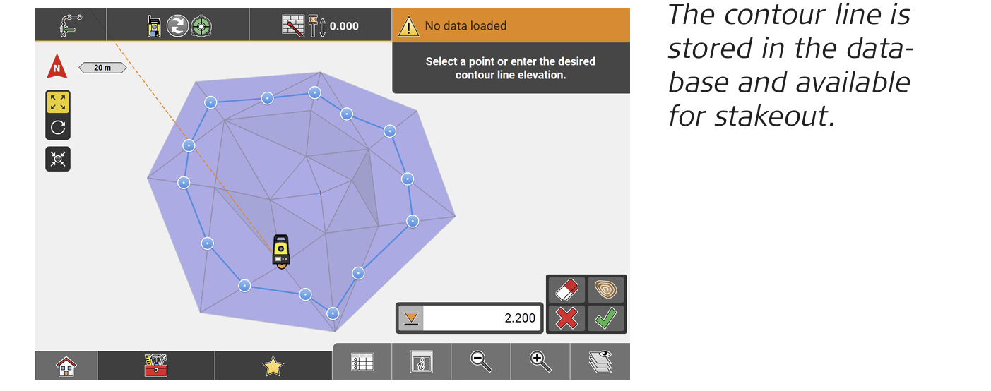 - In the Map View select the surface on which contour lines shall be staked out and tap