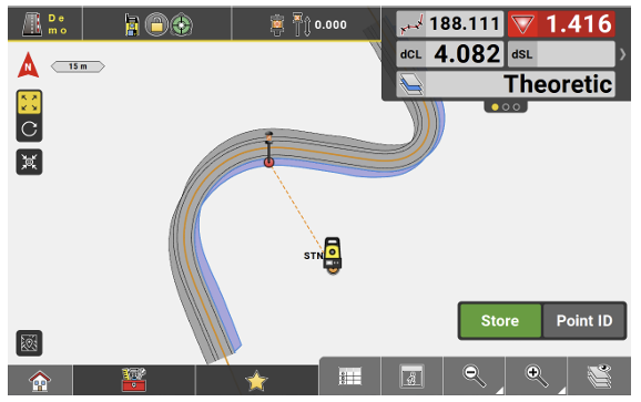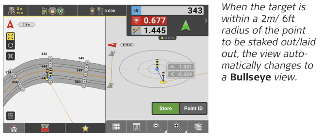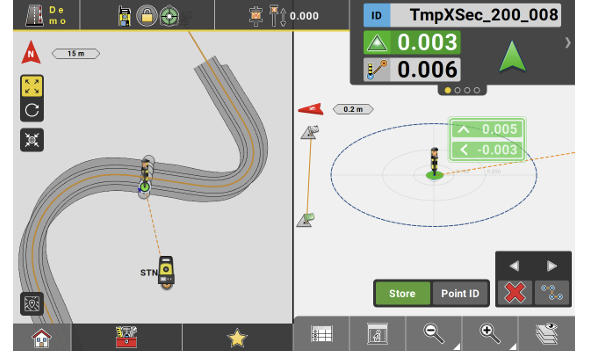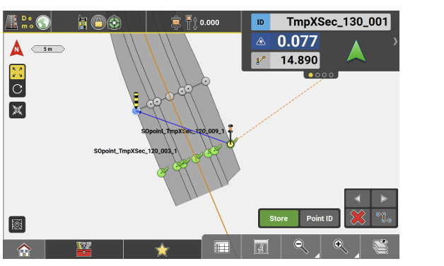 - Move the target further towards the temporary point/line until it is within tolerance. Then tap Store and mark the staked position in the field.